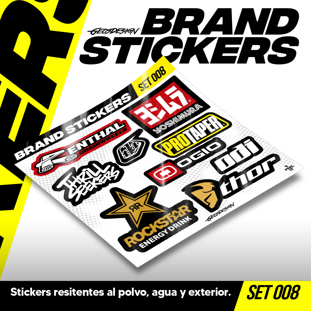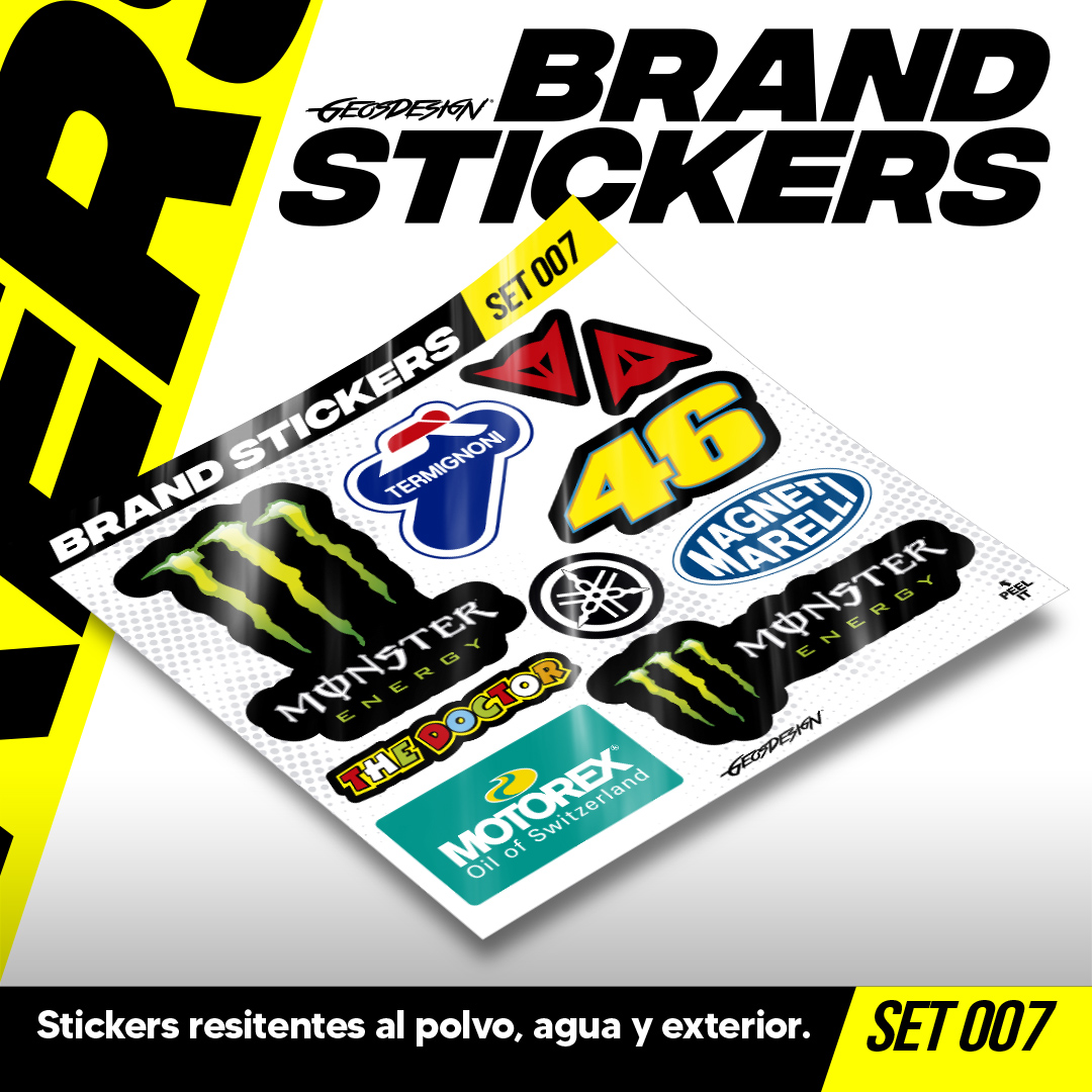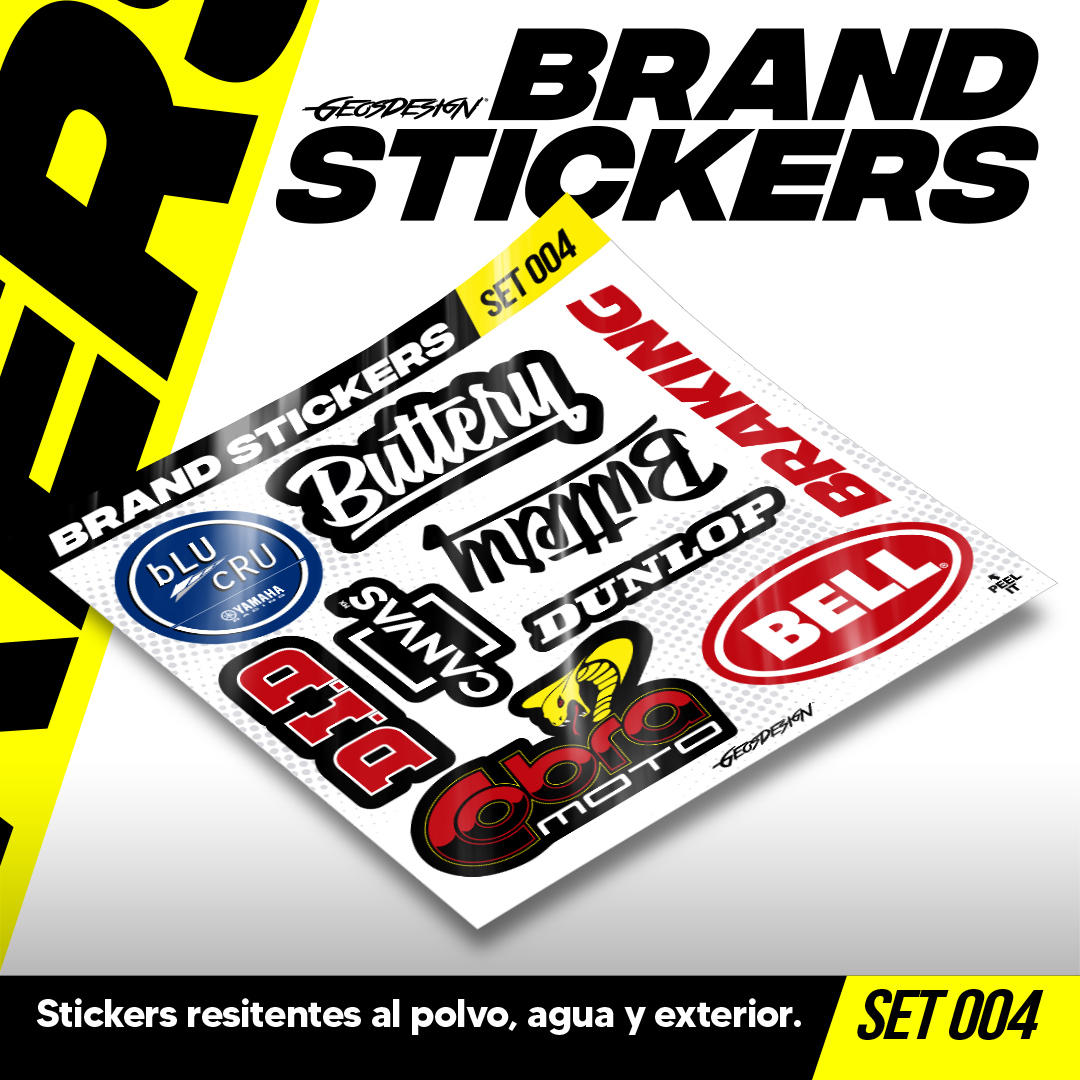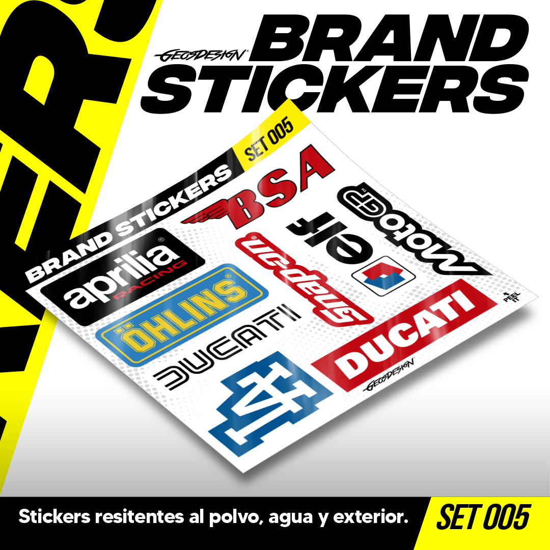 • Son colecciones de stickers de logos de marcas motorsports o lifestyle, se venden en micro sets, son impresos en alta resolución cortados a la forma del logo, cada micro planilla mide 20x20 cm (El tamaño de los stickers puede variar según el diseño). son tanto para interior y exterior, ¡Pegalos donde quieras!